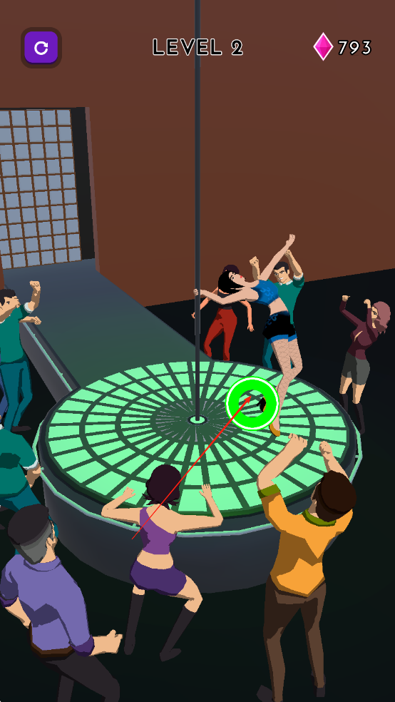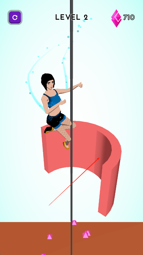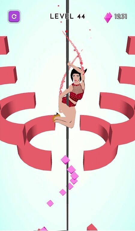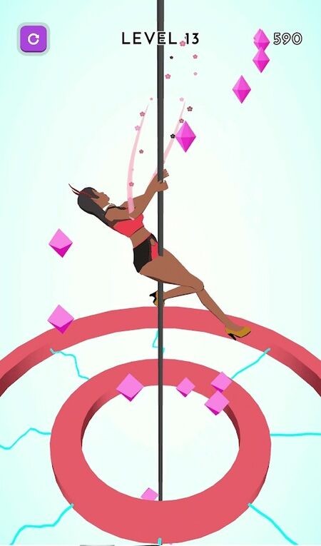 1、通过点击或滑动屏幕控制角色抓住钢管,松手则不伸展身子,在钢管上舞动,顺着杆子向下。