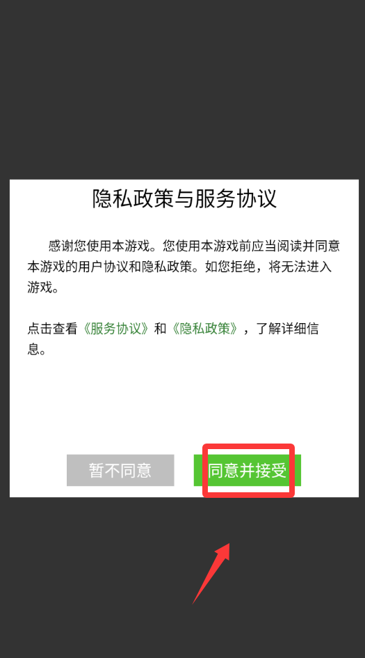 1、点击私隐政策与服务协议的同意并继续。