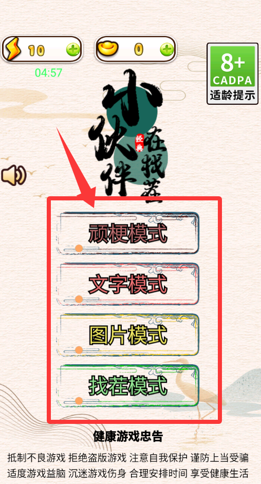 2、进去游戏有4个模式,点击红色箭头那个进去游戏。