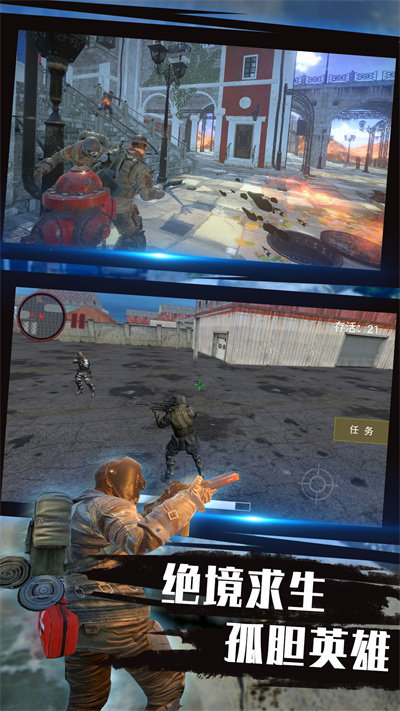 - 枪火纷争战场将沉浸式射击体验与策略生存结合,化身特种兵携带机密情报突破敌军包围。多场景地图支持自由探索,个性化英雄系统搭配成长型任务机制,通过精