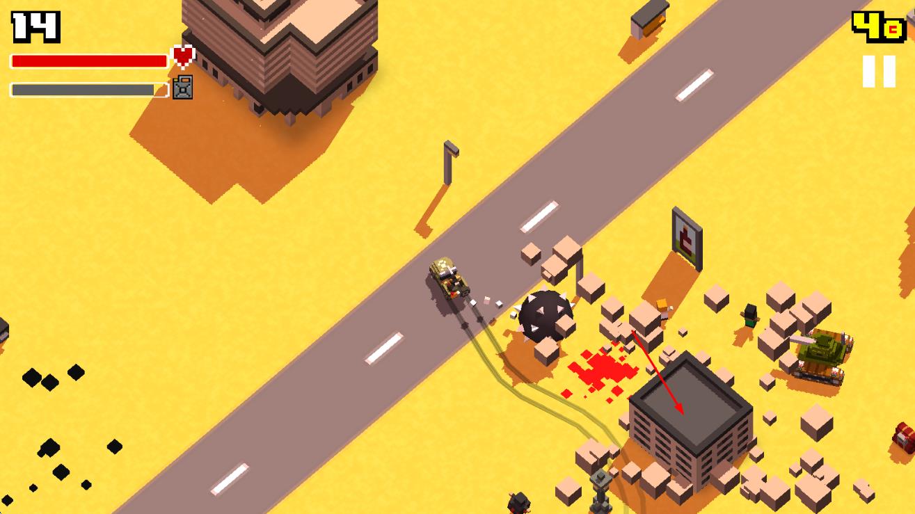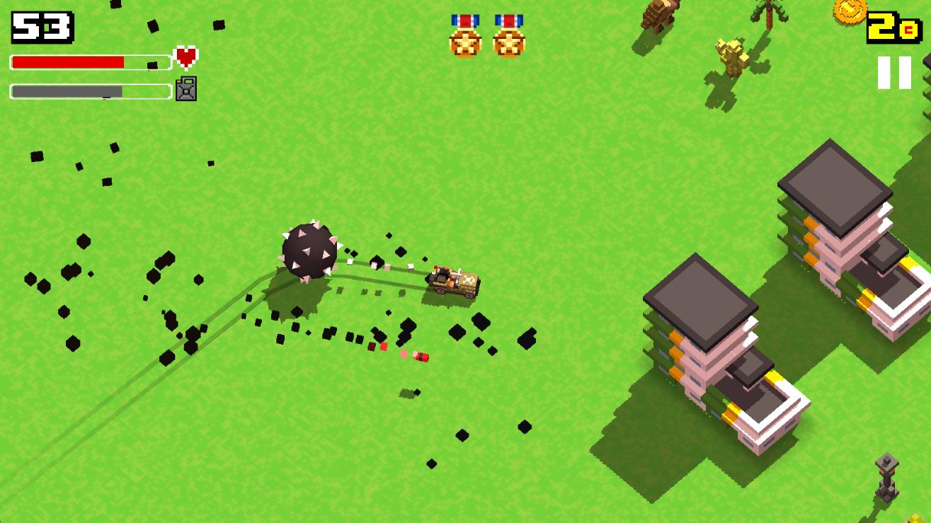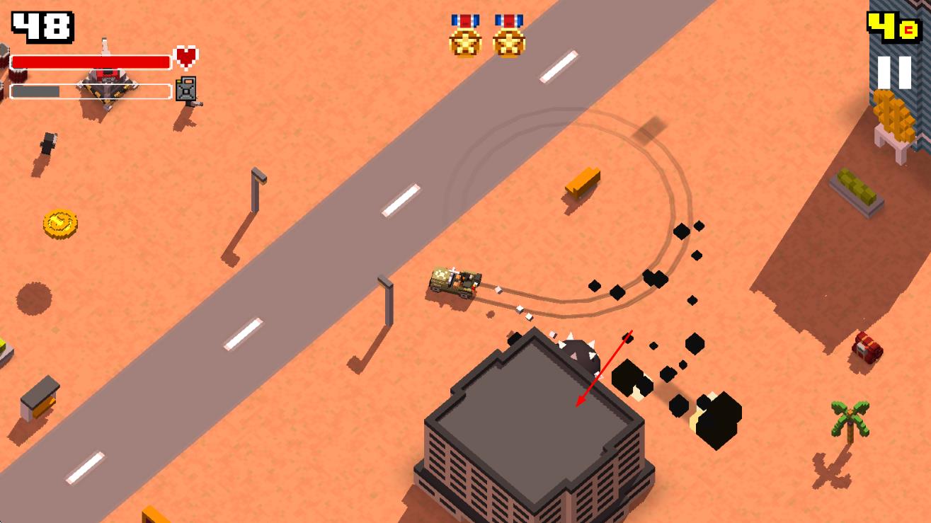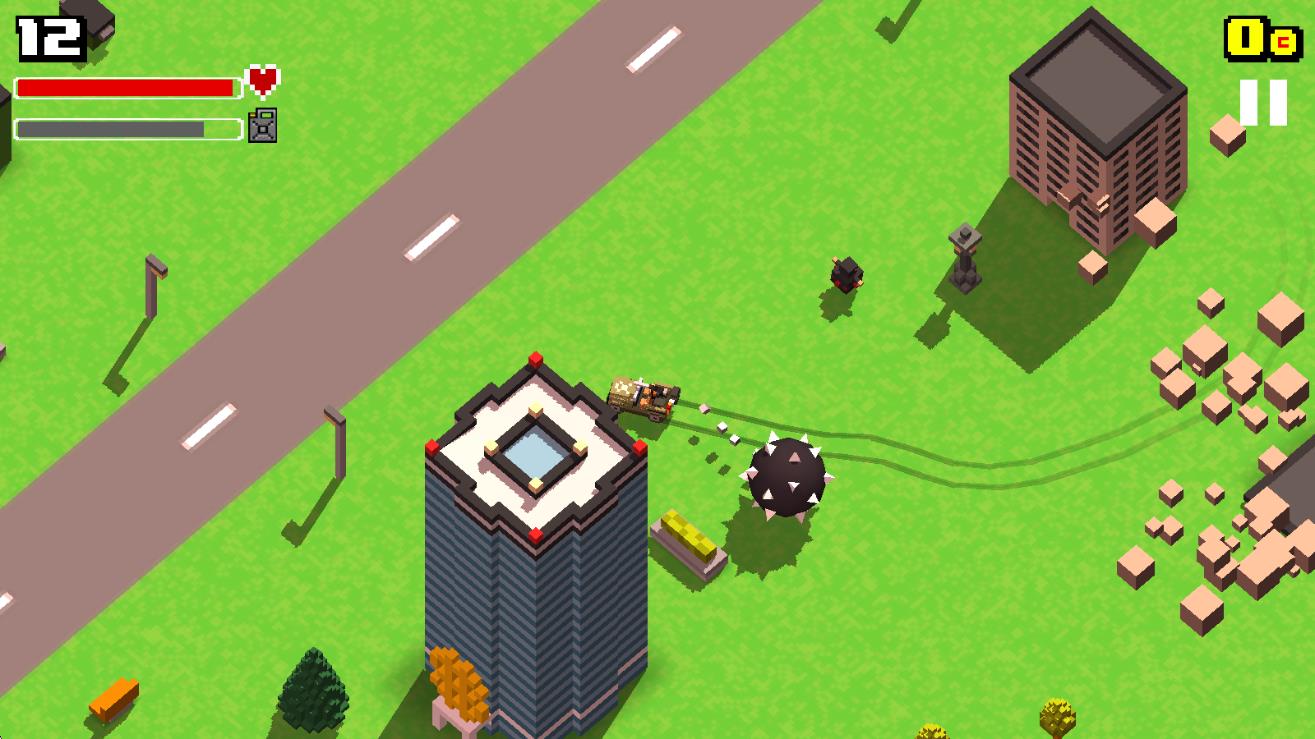 1、破坏反馈带感:撞击建筑物时有像素碎块飞溅特效与沉闷的碰撞音效,连续破坏会触发连击加成,增强破坏的爽快感与解压效果。