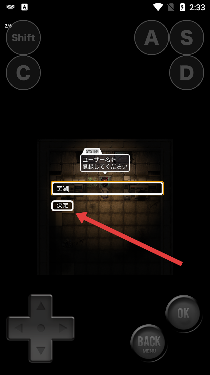 1、在游戏注册的界面输入自己用户名后,点击决定的按钮完成该账号的创建,进入游戏的关卡。