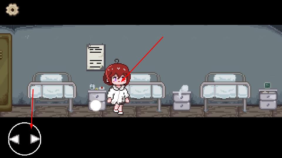 2、借左下角方向按钮移动,于病房等场景,按提示与人物、物品互动,推动剧情,解锁新内容。