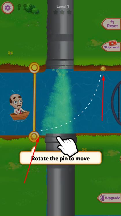 2、遇到管道等障碍时,按提示旋转别针调整位置,引导水流或改变路径,避免老爹遭遇危险。
