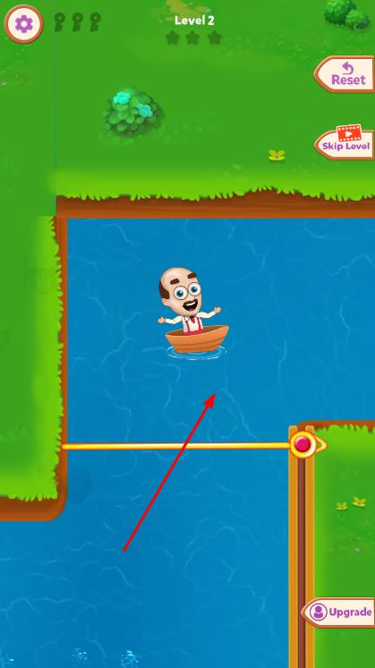 1、进入关卡1,根据提示拖动别针控制老爹,在河道移动。