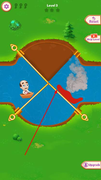 2、规划拉针顺序:根据场景分析,确定拉针的先后顺序,例如若老爹下方有岩浆,需先拉动控制水流的针,让水填满岩浆池,再拉动困住老爹的针使其安全落下。