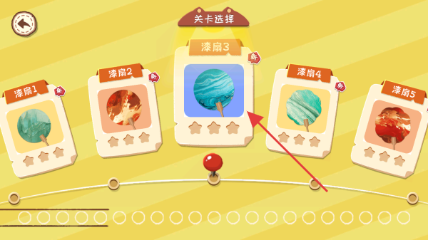 2、在关卡选择界面,选择红色箭头所指的漆扇3关卡,进入该关卡进行漆扇制作挑战。