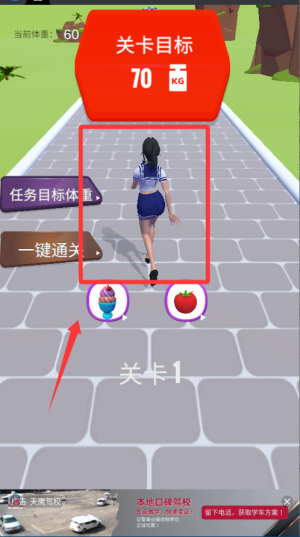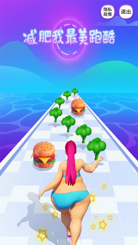 1、通过滑动屏幕控制角色左右移动,在跑酷过程中收集食物,汉堡增加体重,蔬菜减少体重,动态调整体型以应对障碍。