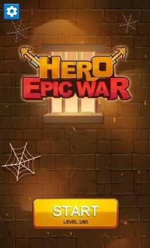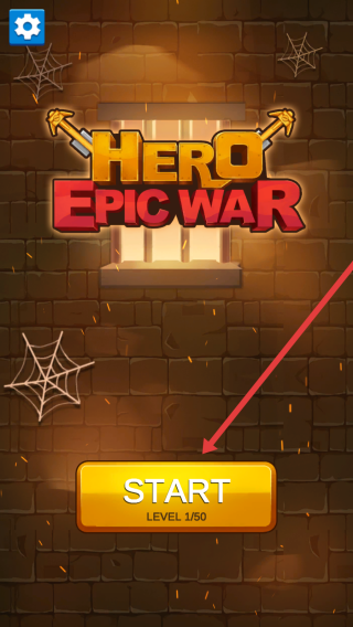 1、在Hero-Epic-War主界面时,通过点击黄色START按钮,进入Level-1关卡,开启闯关冒险。