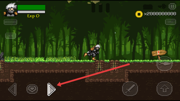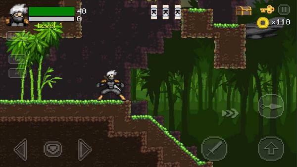 3、在游戏场景里,点击左下的操控虚拟按键让忍者移动,穿过丛林,应对途中出现的敌人与障碍。