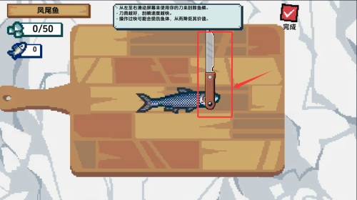3、收获渔获后进入精细处理阶段,按照系统提示的角度与力度进行去鳞作业,操作不当将直接影响鱼获品质与交易价值。