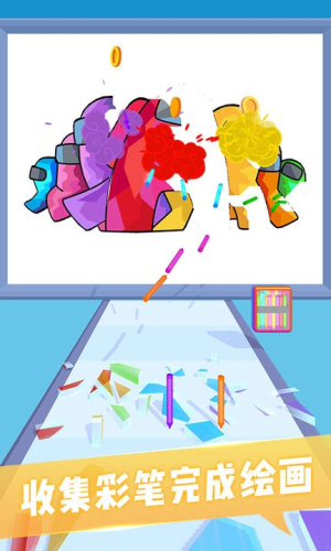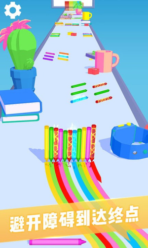 2、游戏设有多种障碍物,如尖刺、陷阱等,玩家需灵活躲避,避免彩笔被消耗或掉落,确保作品完美呈现。