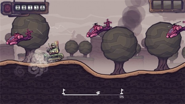 1、创新性的坦克飞行机制,突破传统横版游戏限制。通过精准操控可实现短途滑翔与高空跳跃,开辟立体作战空间。