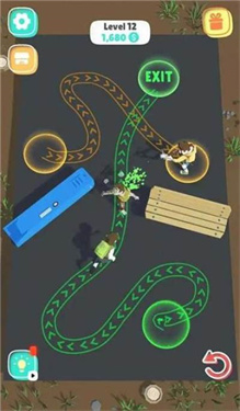 2、移动角色时沿着绿色轨迹前行,借此高效收集所有金币,同时朝着EXIT方向推进,确保收集任务顺利完成。