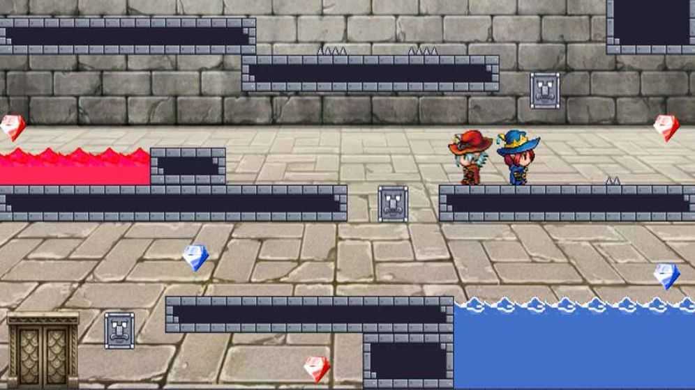 2、双人配合通关:城堡内设有无数机关,需冰火人双人配合才能突破,支持畅快闯关模式,考验玩家对两个角色的协调操控能力。