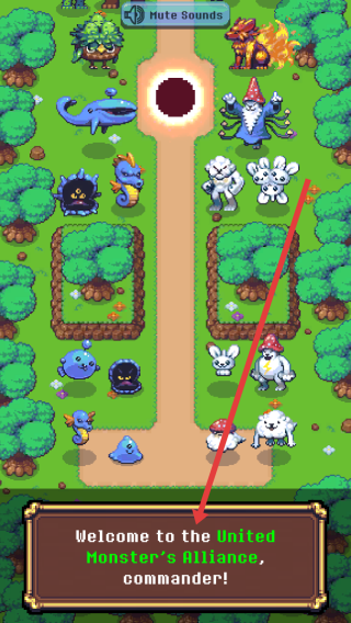 1、进入United-Monster's-Alliance游戏初始地图场景,阅读底部对话框的欢迎语,熟悉怪物联盟世界观,准备开启防御任务。