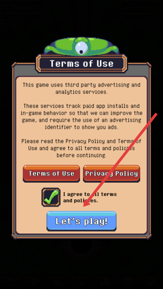 3、在使用条款界面,勾选I-agree-to-all-terms-and-policies,点击Let’s-play!,确认协议后正式进入游戏,开始怪物联盟的防御战斗冒险。