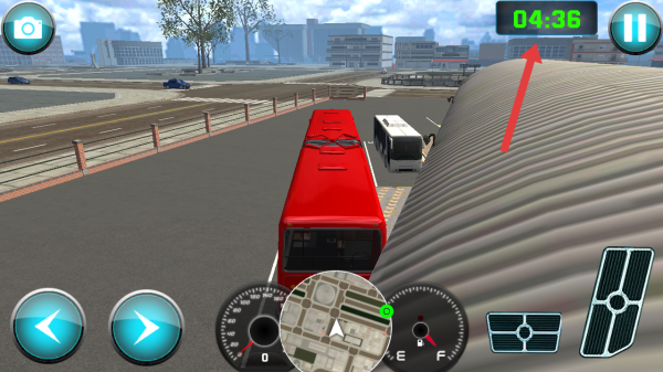 1、在驾驶红色巴士前,关注右上角04:36的倒计时,借助中间小地图规划路线,启动载客任务。