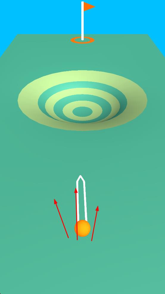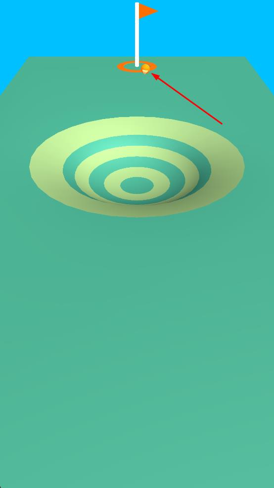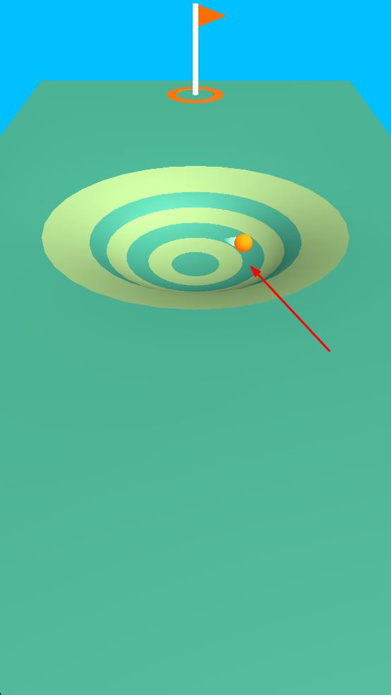 2、发射高尔夫球后,球会沿着一定轨迹滚动,经过带有同心圆的区域,最终目标是让球落入球洞,为完成关卡任务奠定基础。
