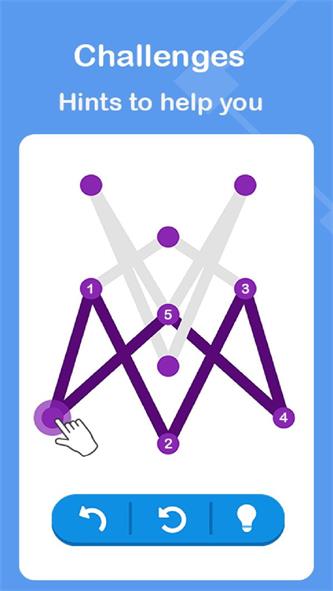 1、一笔连线挑战:核心玩法是用一笔连接场景中的所有点,确保连线不中断、不重复,通过拖动手指绘制连线,考验对路线的整体规划能力。