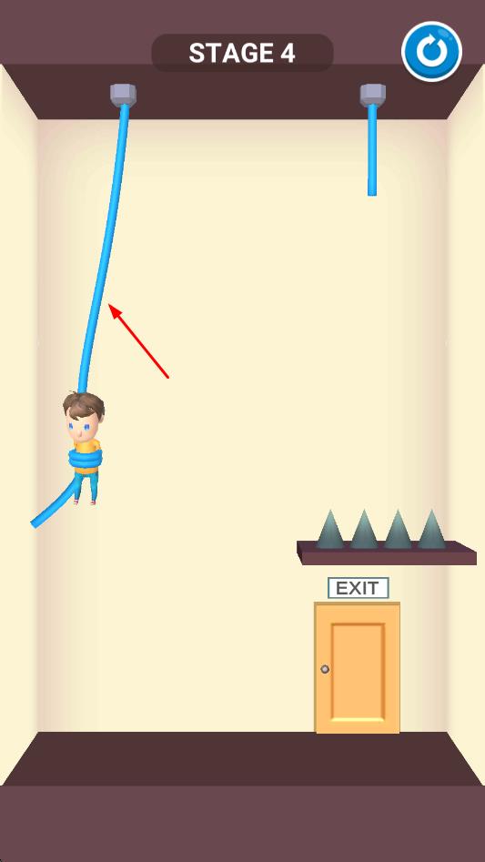 3、渐进难度挑战:从简单的单绳悬挂到复杂的多层绳网与障碍物组合,关卡难度逐步提升,考验了玩家的判断与反应的能力。