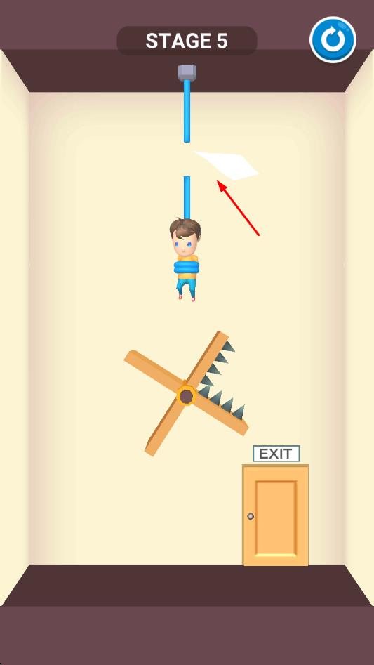 2、滑动屏幕对准目标绳子进行切割,利用物理惯性让人类向安全区域移动,同时注意避开障碍物,防止意外发生。