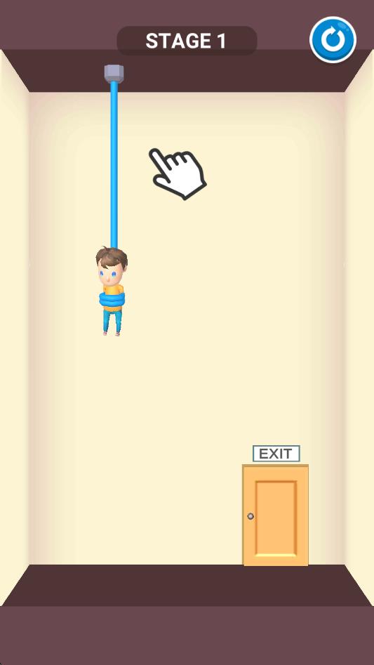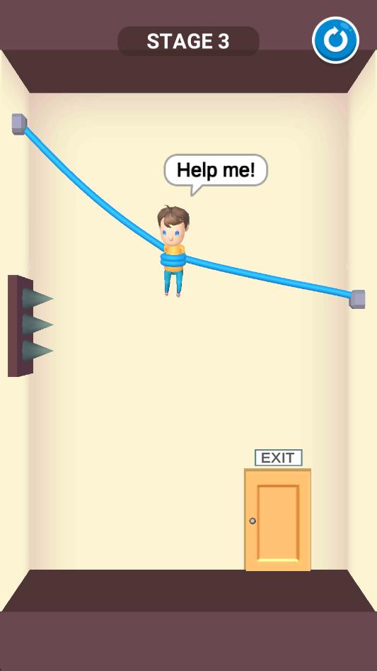 割绳救援是一款搞笑魔性的物理游戏,人类被吊在半空,玩家需切割绳子将其安全解救,核心在于精准判断切割时机与位置——比如避开障碍物、利用重力让人类落到安全区,若失误会导致搞笑又惊险的后果,过程紧张又充满趣味,每一次切割都考验物理预判,从简单单绳到多绳缠绕的复杂场景,难度逐步提升。