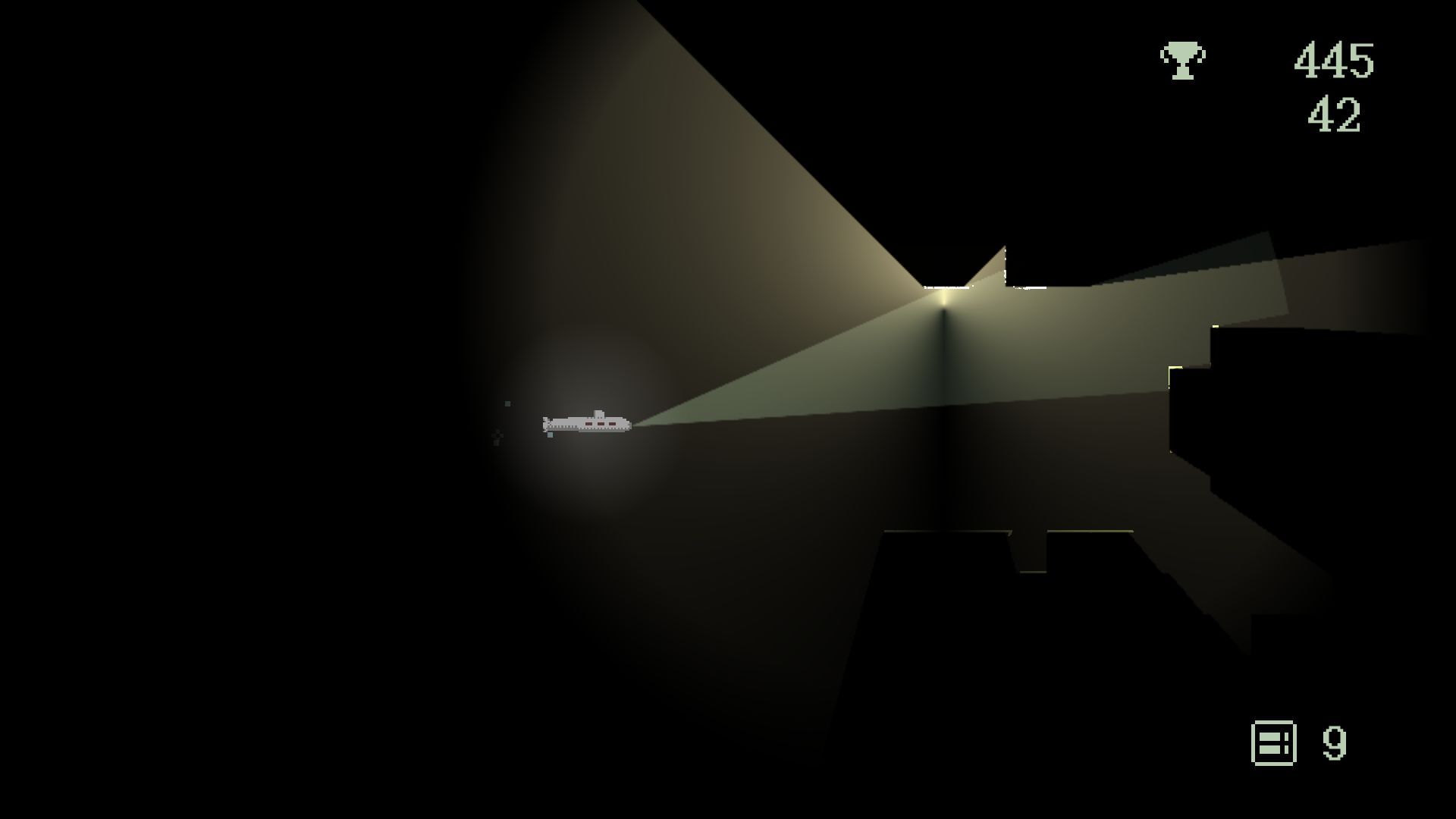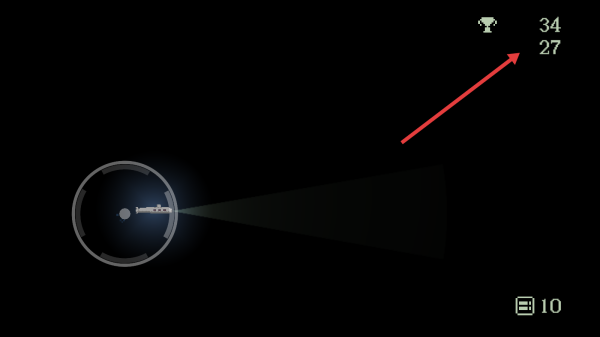 2、游戏中利用光束探索黑暗区域,同时留意右上角分数变化,通过操作提升得分,在巡航过程中注意规避潜在危险。