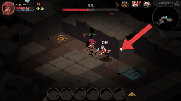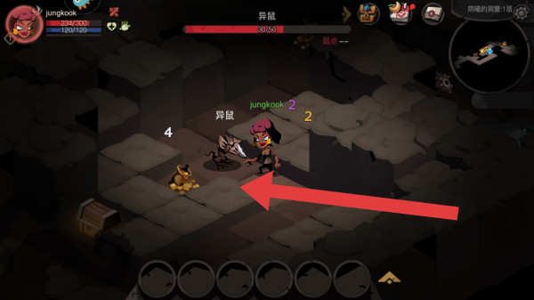 2、消灭完异鼠时,往前走两步收集前面的黄金,再继续向前面探险,寻找收集更多的物资。