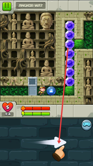 2、刺激障碍应对:探险中需绕过蛇、乌龟、炸弹、猴子等多种障碍物和陷阱,部分区域还需潜入水中完成任务,让探险过程充满紧张刺激。