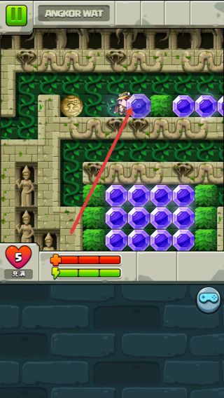 2、遇到紫色宝石等可收集物品时,靠近物品,通过点击或滑动屏幕等操作收集这些物品,积累资源。