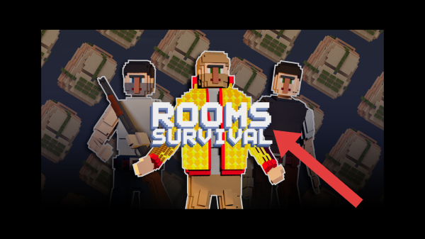 1、是游戏的宣传图,明确显示名称ROOMSSURVIVAL,属于像素风格的生存探险类相关界面。