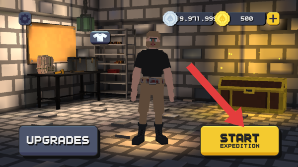 2、呈现角色初始界面,有STARTEXPEDITION开始探险的按钮,点击START方可进入,显示金币等资源数量。
