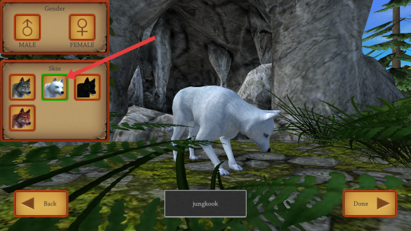 1、进入游戏后,首先进行角色的创建,选择狼的性别和皮肤,打造属于自己的独特的狼的角色。
