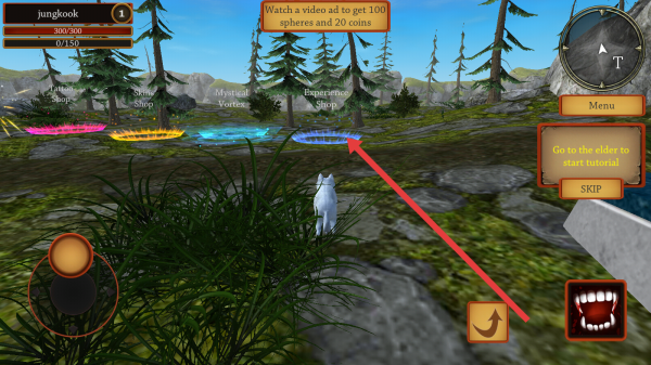 2、创建好角色后,跟随黄色的FOLLOW提示标记,操控狼在场景中移动,熟悉游戏的移动和操作方式。