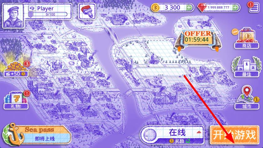 1、进入游戏后选择初始像素角色与基础武器,熟悉陆地、海洋、空中不同战场的操作方式,完成新手引导任务,开启像素战争之旅。