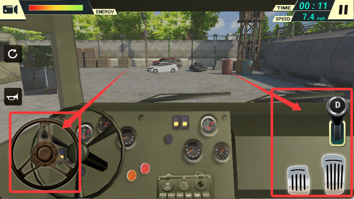 4、进入驾驶舱视角,使用方向控制与档位切换,安全运送货物抵达终点。