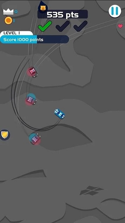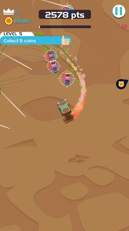 2、利用碰撞获取分数:在千钧一发时,巧妙引导警车相互碰撞可获得分数,需把握时机调整位置,让追兵因避让不及而相撞,既减少威胁又能加分,让逃亡多了一层策略性乐趣。