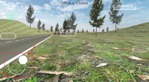 3、滑动红框白色摇杆,控制角色在公路上移动。