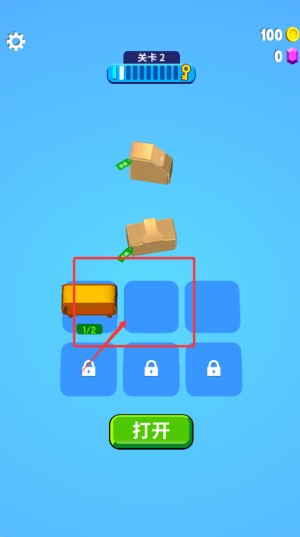 3、按照提示依次点击包裹特定位置,成功解开所有固定装置即可获取箱内物品。