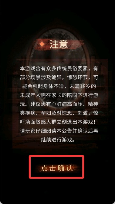 1、打开游戏后会有一些注意事项,点击下方按键进入游戏。