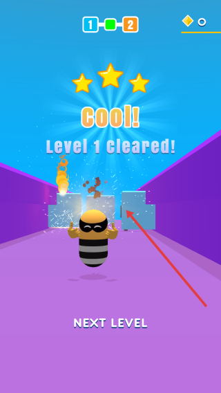 3、通关后点击NEXT LEVEL按钮,进入下一关,持续优化路径、躲避障碍,推进游戏挑战。