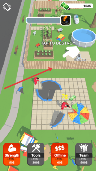 2、破坏当前物品后,跟随新出现的TAP TO DESTROY指引,点击下一个目标,持续拓展破坏区域。