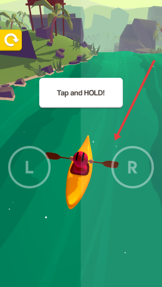 2、按Tap and HOLD提示,长按左侧L或右侧R按键,控制皮划艇左右划动、躲避障碍前行。