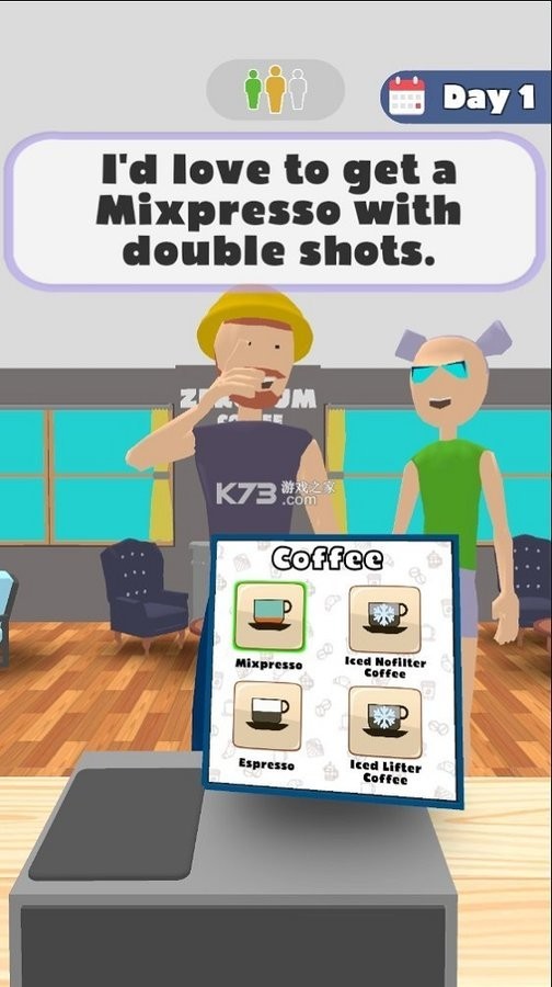 1、进入游戏后先熟悉操作台布局,学习浓缩咖啡等基础饮品的制作步骤,接待首批客人并记录他们对甜度、奶泡等细节的偏好。