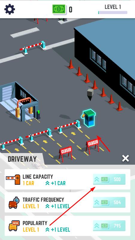 2、点击界面中的洗车设施或相关区域,安排车辆进入洗车流程,通过赚取的金钱,点击界面提升车道容量。