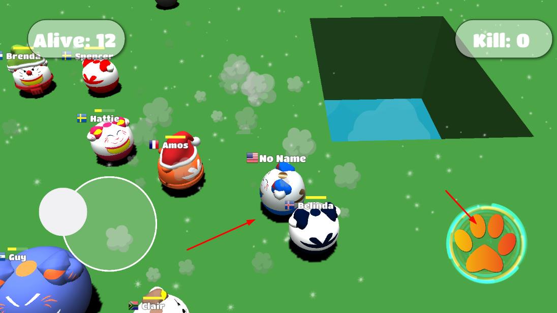1、撞击对决:控制猫咪角色在场地中移动,观察其他玩家位置,找准时机发起撞击,利用惯性将对手撞出安全区域,淘汰对手积累战绩。