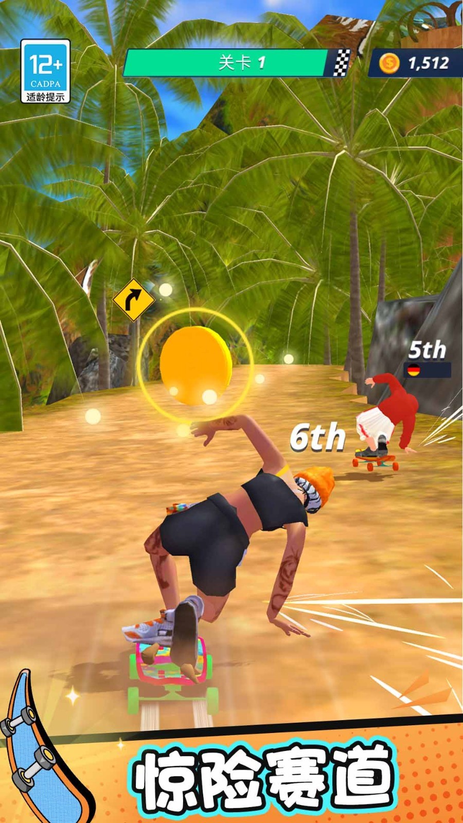 2、多样化对手AI系统,每个电脑角色都有独特的滑行风格和竞技策略。随着关卡推进,对手会学习玩家的操作习惯,不断调整应对方式。