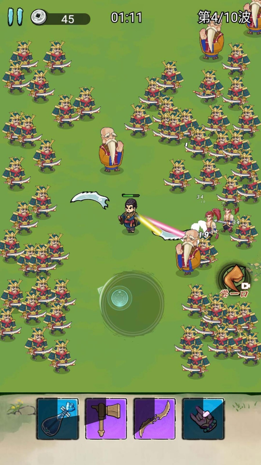- 爷们来割草中文版将武侠元素融入休闲闯关玩法,带来独特的割草体验。化身江湖侠客,通过收集飞刀强化战力,应对不同特性的敌人。关卡中需合理搭配武器与属
