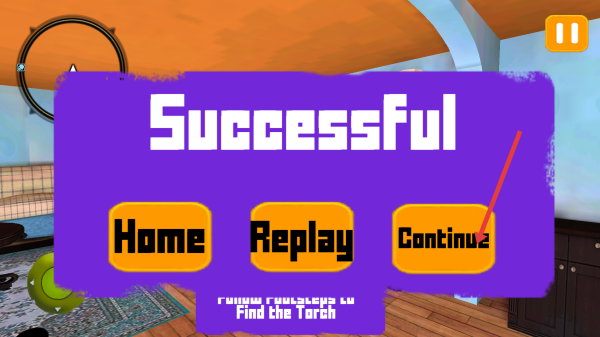 3、成功到达终点后,出现Successful界面,可选择Home返回主页,Continue继续游戏,按需求点击操作。